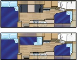 | Beds (Extra Large) | Rear double bed with innerspring mattress, Front overhead double bed, dinette double bed. |